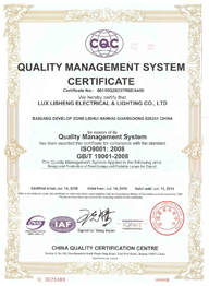 LUX controls the quality in strict accordance with ISO9001-2000 quality management system, emphasizing the independent research-based innovative ideas. After a long time of practice and improvement, we have successfully owned a number of core patents, and our products have passed through the certification of German Rhine TUV / GS, INTERTEK / CE, ROHS, United States UL, Canadian CUL, PSE, SAA and sold well in more than 50 Countries and regions, becoming a high quality supplier of international famous enterprises such as Philips, Auchan, Carrefour, the United States TARGET, QVC, Wal-Mart and Ikea. With the technical guidance, LUX will continue to promote the development of LED application industry, beautify the urban night and improve the future lighting.