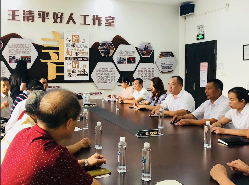 区、镇、社区各级领导首先与利升光电董事长兼利升光电关工委主任王清平先生在利升会议室举行座谈,共同探讨区、镇、社区、企业四级关工委如何推进企业关工委工作。
